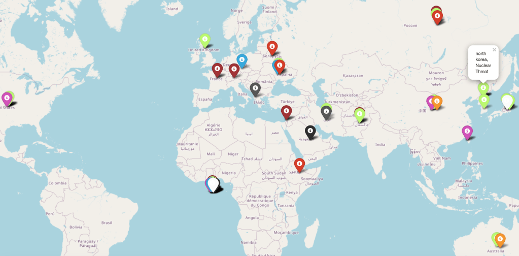These are a few samples of one of the maps produced by my thesis in Chapter 7. I could produce them within the minute timeframe as the text data from the tweets was being processed. These maps were from March 17th, 2023, where there was a lot of geopolitical action surrounding North Korea testing missiles.